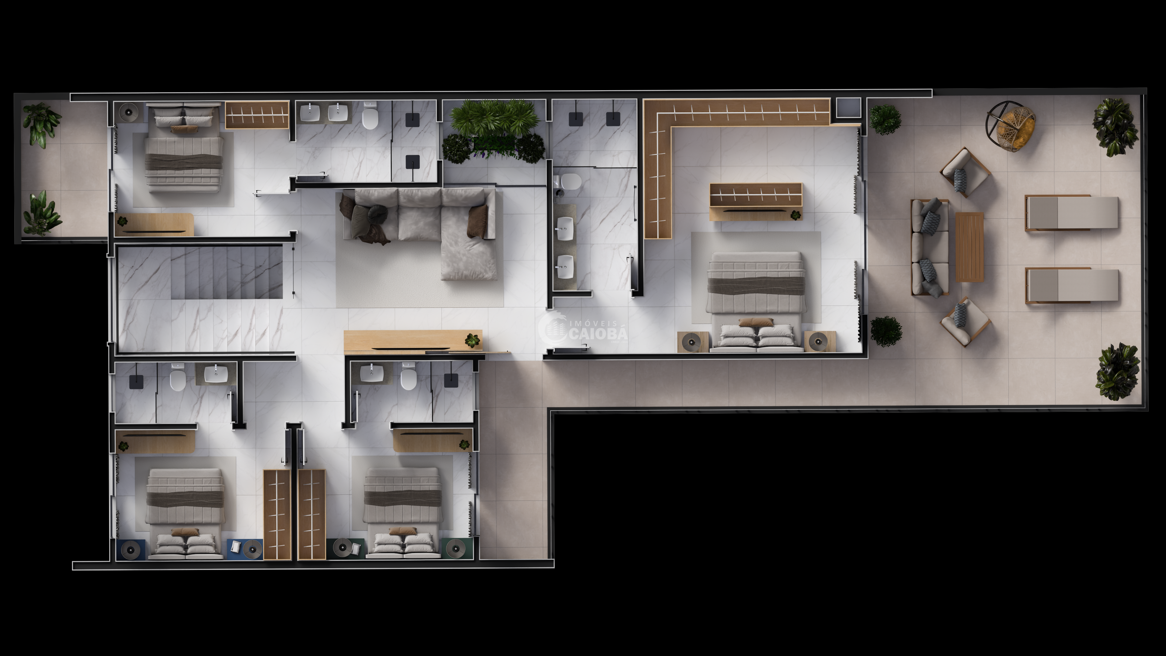 - Suíte principal com terraço privativo;